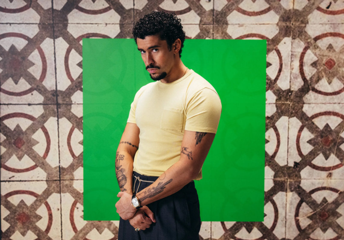 Bad Bunny, bloc de soleil sur fond de braise : la nonchalance assumée, l’attitude taillée au cordeau. Un regard qui groove plus fort qu’un beat latino (c) DR