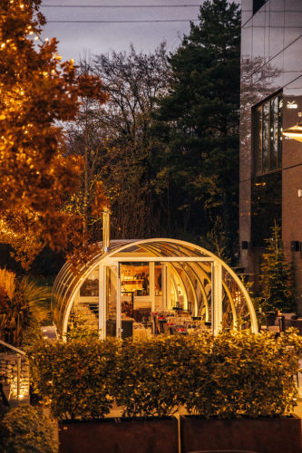 Ici, exit le folklore et la nappe à carreaux. La Capsule trace une ligne claire : tunnel translucide, halo lumineux, design qui frôle la science-fiction sans jamais perdre le goût du vrai! L’esprit industriel du restaurant Moments s’y glisse en douceur, minimal mais jamais froid. Un cocon contemporain, pensé pour rapprocher les corps et délier les langues.