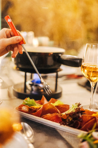Puis vient le twist : truffe noire pour les joueurs de luxe discret, charcuterie helvétique, viande séchée des Grisons, pâté en croûte genevois, soupe à l’oignon gratinée. Et pour sortir du cercle sans quitter la table : demi-coquelet rôti, salade et Malakoff. La tradition ne bouge pas, elle glisse tout schuss! Et pour accompagner le mouvement ? Des vins précis, choisis pour dialoguer avec le fromage sans l’écraser, des cocktails signature, un vin chaud maison ou encore des bières suisses! Et pour ceux qui préfèrent garder la tête claire : cocktails 0%, vin chaud 0%, jus artisanaux, thés et infusions. La chaleur circule, quel que soit le degré.