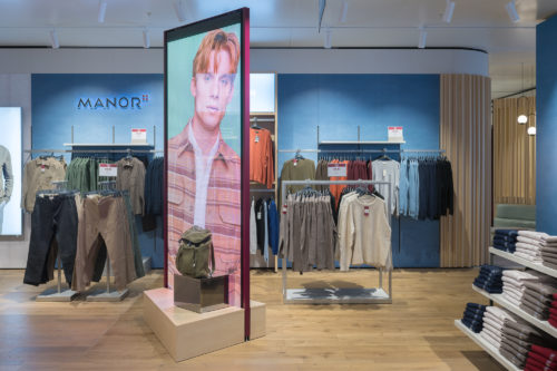 Nouvelle scénographie, lignes aérées, circulation fluide : les espaces mode de Manor Genève gagnent en clarté et en respiration. (c) Manor
