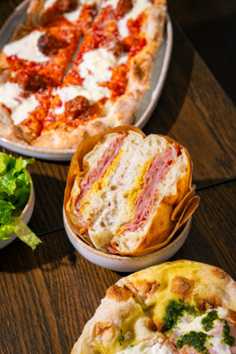 Quant aux Pinsa Buns, ils font descendre l’ovale dans la rue : porchetta réconfortante comme une balade au marché de Campo de’ Fiori, saumon fumé qui drague le cream cheese façon dolce vita, mortadelle rétro-pop qui groove à chaque bouchée, ou veggie haut en couleurs qui s’impose comme une star en pleine lumière.