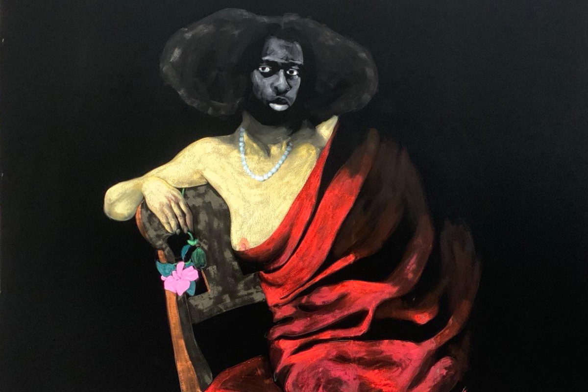 Roméo Mivekannin, Après Vallotton Femme à la Rose, 2025, Acrylic on velvet, 140 x 180 cm. Courtesy Roméo Mivekannin, Private Collection, Geneva. ©️ Galerie Barbara Thumm
